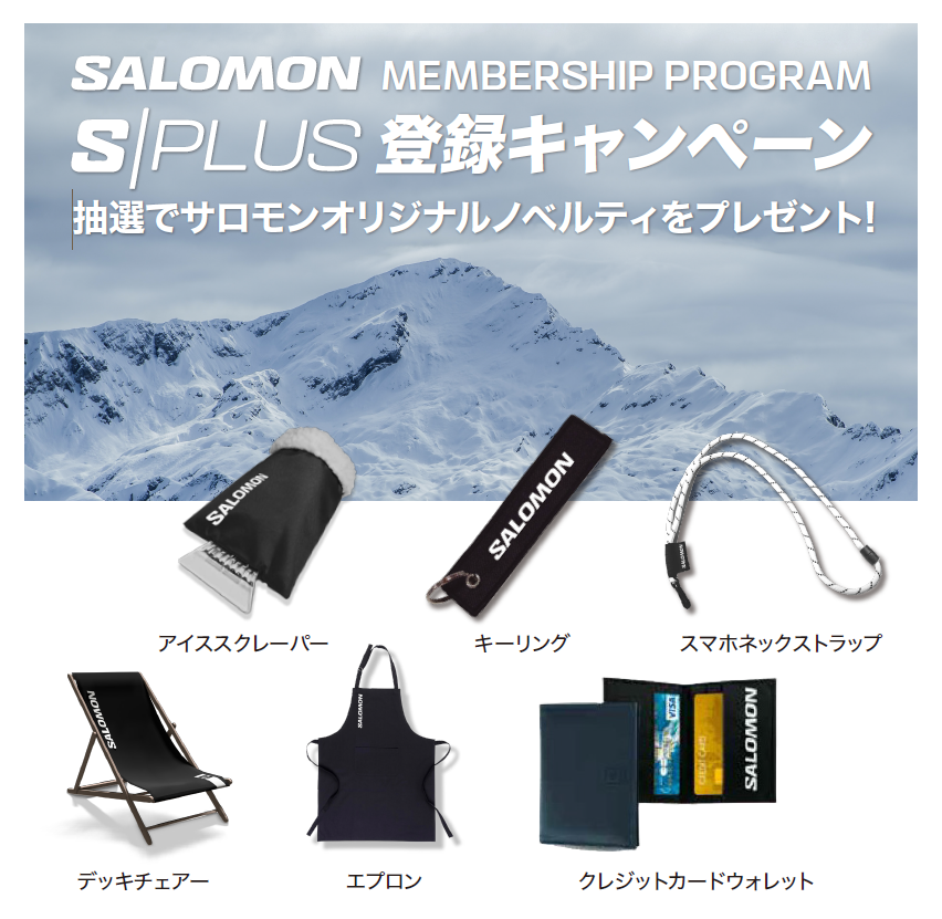 キャンペーン要項 | S/PLUS登録 campaign( 以下本キャンペーン) では、 S/PLUSに登録または登録済みかつ、キャンペーン申込フォームからお申込みのお客様から抽選で55名様にサロモン非売品ノベルティが当たります |