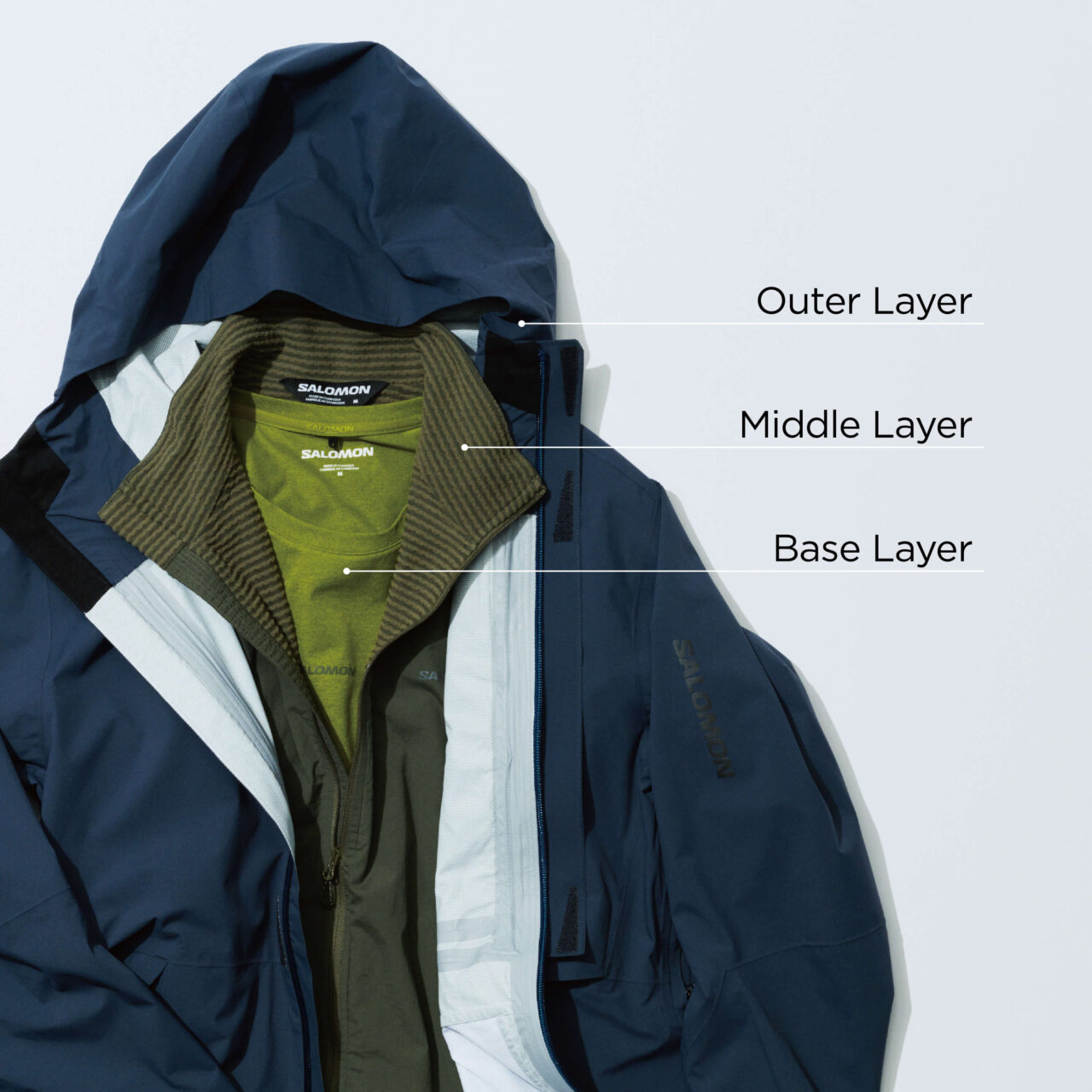 その大きな気温差に対応するためには、レイヤリング、いわゆる重ね着のテクニックが欠かせません。なかでも、ベースレイヤー・ミドルレイヤー・アウターレイヤーという三層構造を意識してウェアを組み立てることが重要になります。ここでは、富士登山におけるレイヤリングの重要性や具体的なレイヤリング例について、太田安彦ガイドのアドバイスをもとに“最適解”を探っていきます。