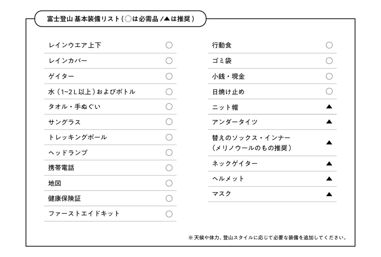 富士登山装備チェックリスト